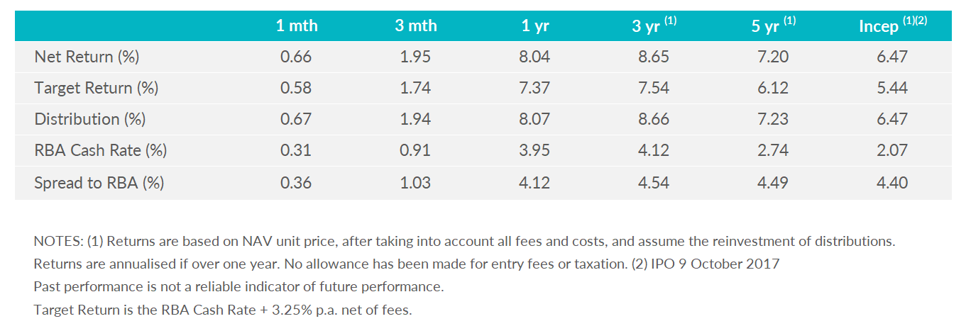 MXT targets a return of the RBA cash rate plus 3.25% p.a.* (currently 6.85% p.a. net of fees) through the economic cycle, with income distributions intended to be paid monthly.
