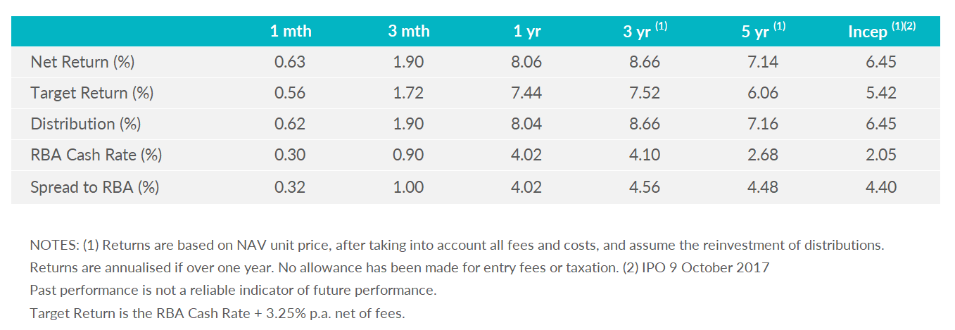 MXT targets a return of the RBA cash rate plus 3.25% p.a.* (currently 6.85% p.a. net of fees) through the economic cycle, with income distributions intended to be paid monthly.